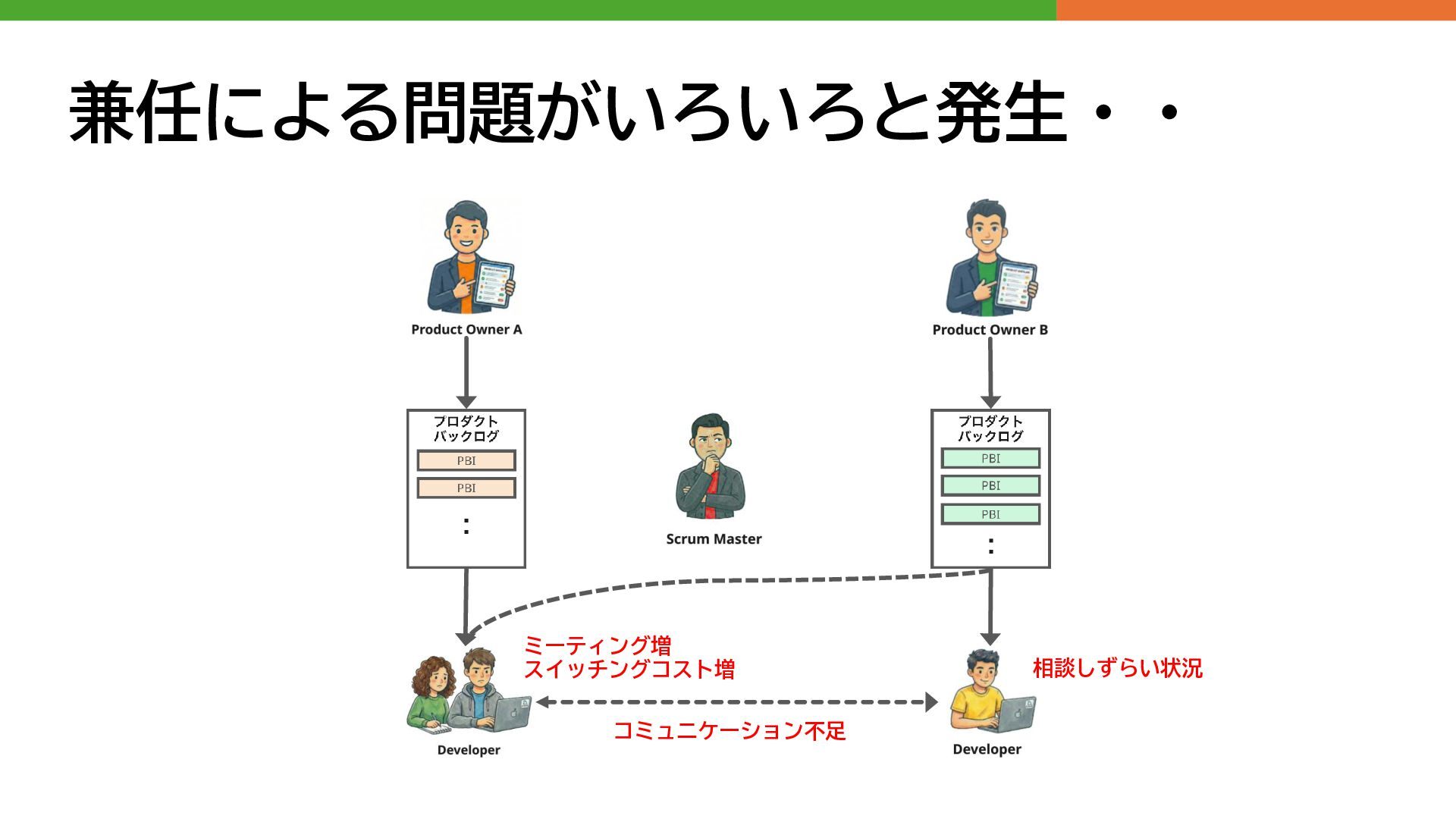 兼任による問題がいろいろと発生・・ コミュニケーション不足 ミーティング増 スイッチングコスト増 相談しずらい状況