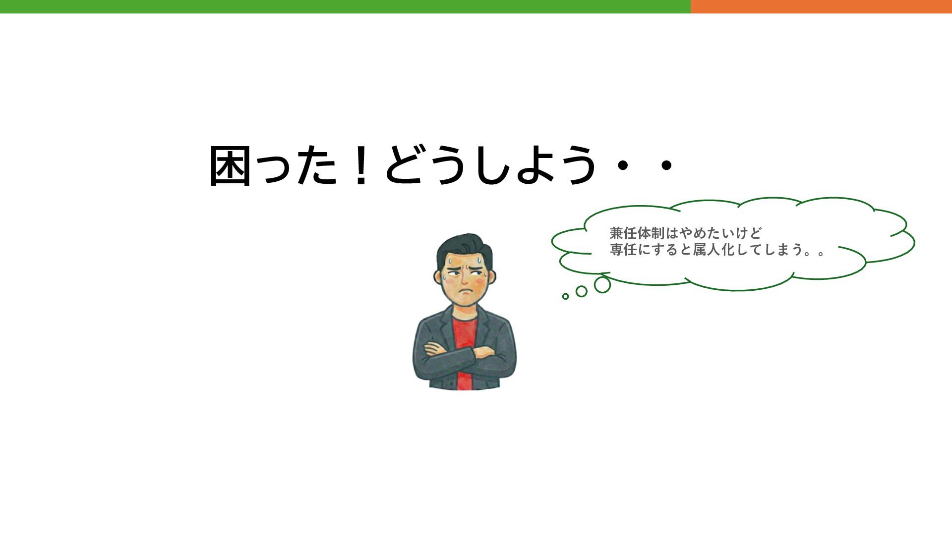 困った!どうしよう・・ 兼任体制はやめたいけど 専任にすると属人化してしまう。。