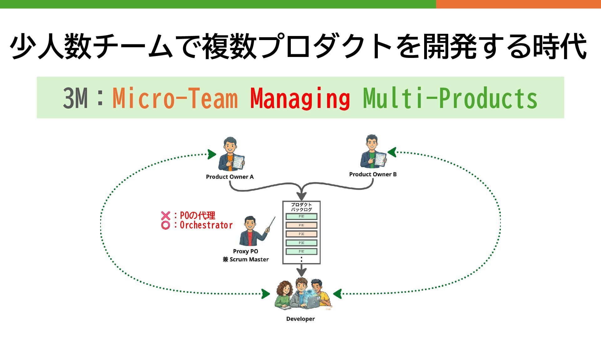 少人数チームで複数プロダクトを開発する時代 3M:Micro-Team Managing Multi-Products :POの代理 :Orchestrator