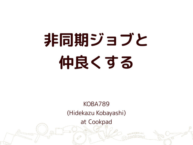 非同期ジョブと 仲良くする KOBA789 (Hidekazu Kobayashi) at Cookpad