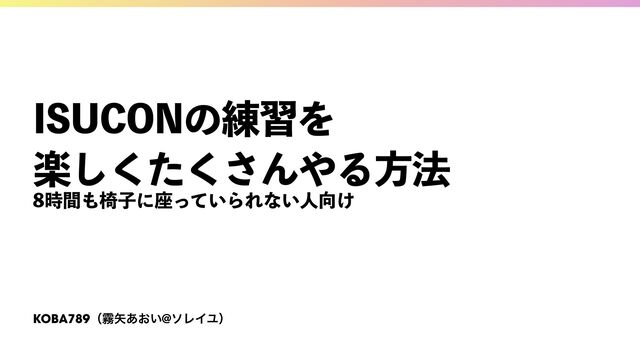 KOBA789ʢໄ͓͍͋@ιϨΠϢʣ *46$0/ͷ࿅शΛ ָͨ͘͘͠͞ΜΔํ๏ ࣌ؒҜࢠʹ࠲͍ͬͯΒΕͳ͍ਓ͚
