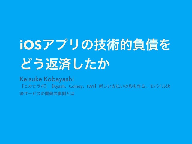 iOSΞϓϦͷٕज़తෛ࠴Λ Ͳ͏ฦࡁ͔ͨ͠ Keisuke Kobayashi ʲώΧˑϥϘʳʲKyashɺCoineyɺPAYʳ৽͍͠ࢧ͍ͷܗΛ࡞ΔɺϞόΠϧܾ ࡁαʔϏεͷ։ൃͷཪଆͱ