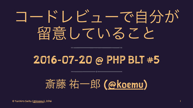 ίʔυϨϏϡʔͰ͕ࣗ ཹҙ͍ͯ͠Δ͜ͱ 2016-07-20 @ PHP BLT #5 ࡈ౻ ༞Ұ (@koemu)
