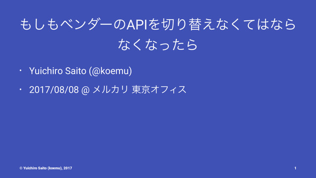 ࠓͷ͓ • ֎෦ͷϕϯμʔΛ͏APIΛΓସ͑͟ΔΛಘͳ͘ͳͬͨΒͲ͏ ͠Α͏͔ɻ • ઃܭͱҠߦͷ࣮ફྫΛऔΓ্͛·͢ɻ © Yuichiro Saito (koemu),