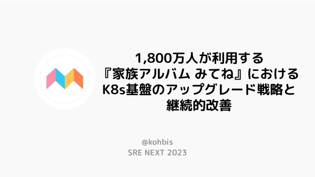 1,800万人が利用する 『家族アルバム みてね』における K8s基盤のアップグレード戦略と 継続的改善 @kohbis SRE NEXT 2023