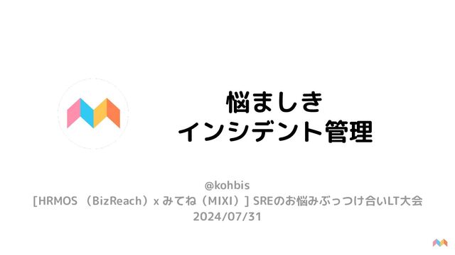 悩ましき インシデント管理 @kohbis [HRMOS (BizReach)x みてね(MIXI)] SREのお悩みぶっつけ合いLT大会 2024/07/31