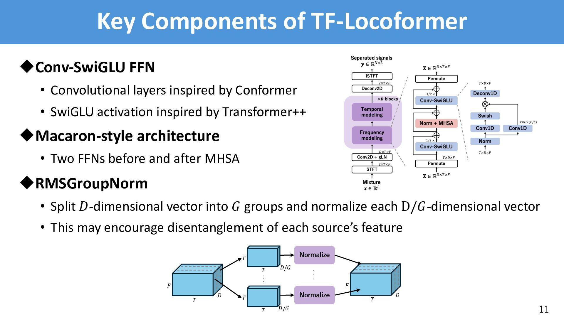 10. Key Components of TF-Locoformer uConv-SwiGLU FFN • Convolutional layers inspired