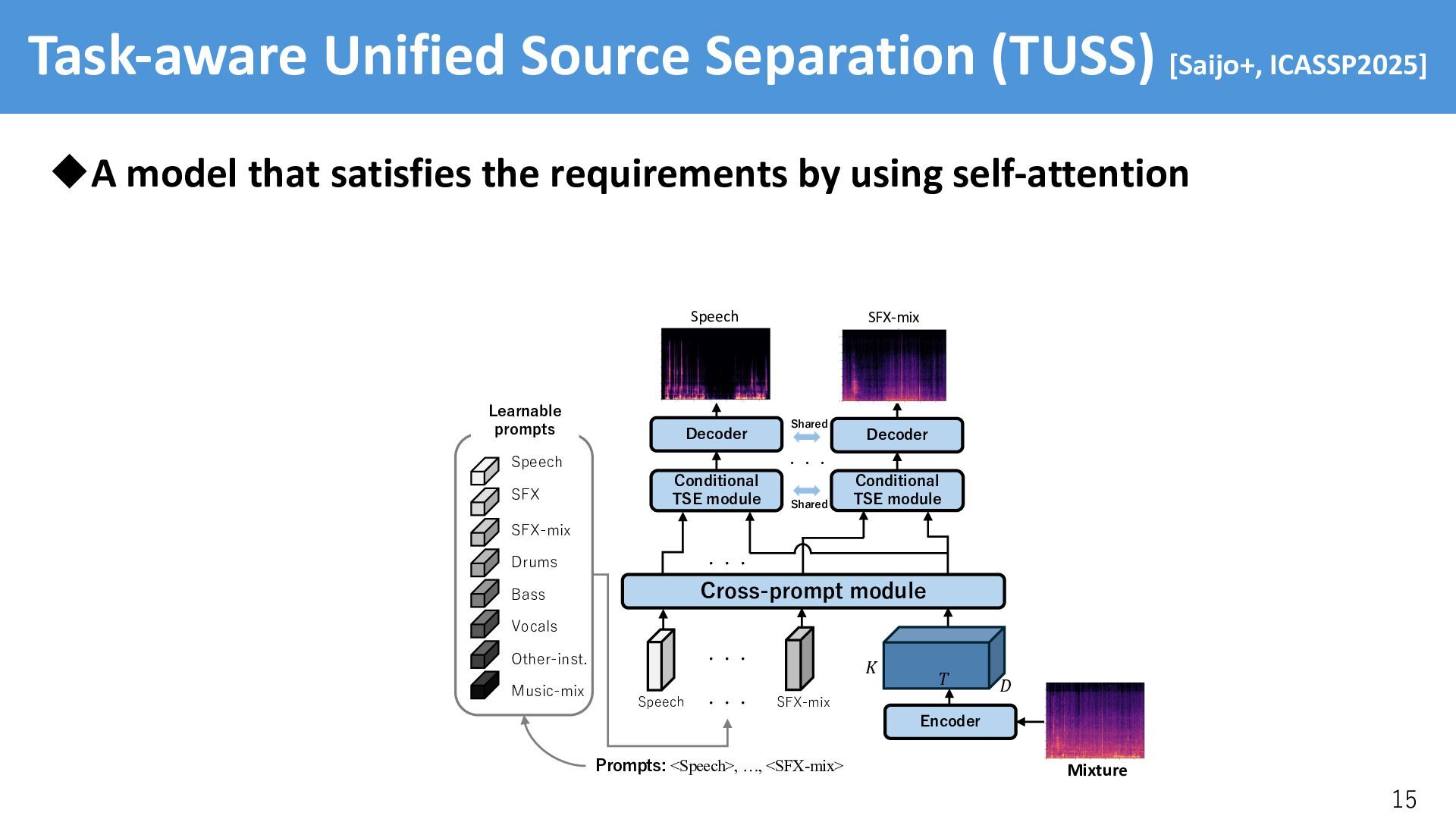 14. Task-aware Unified Source Separation (TUSS) [Saijo+, ICASSP2025] uA model that