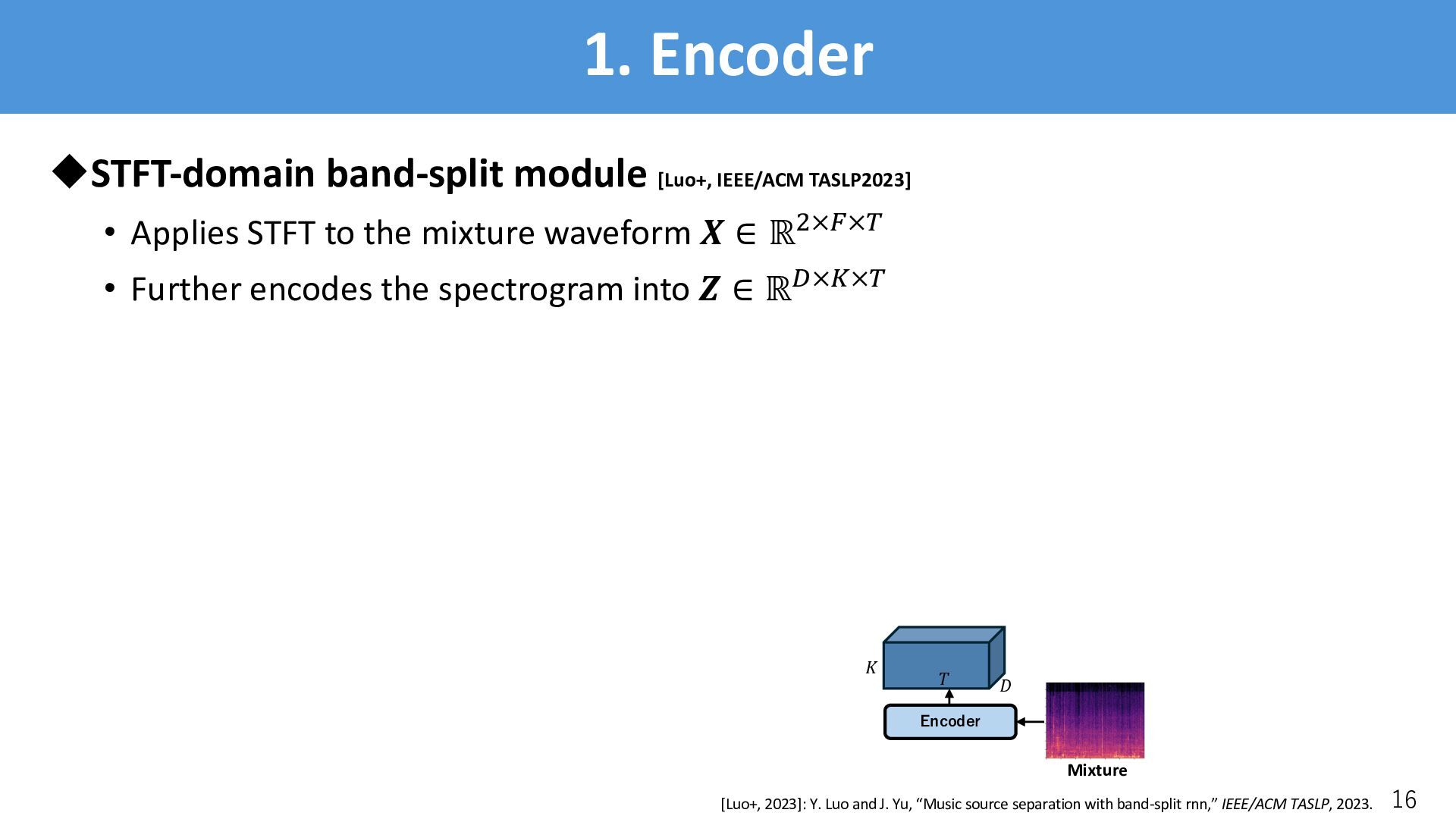 15. 1. Encoder uSTFT-domain band-split module [Luo+, IEEE/ACM TASLP2023] • Applies