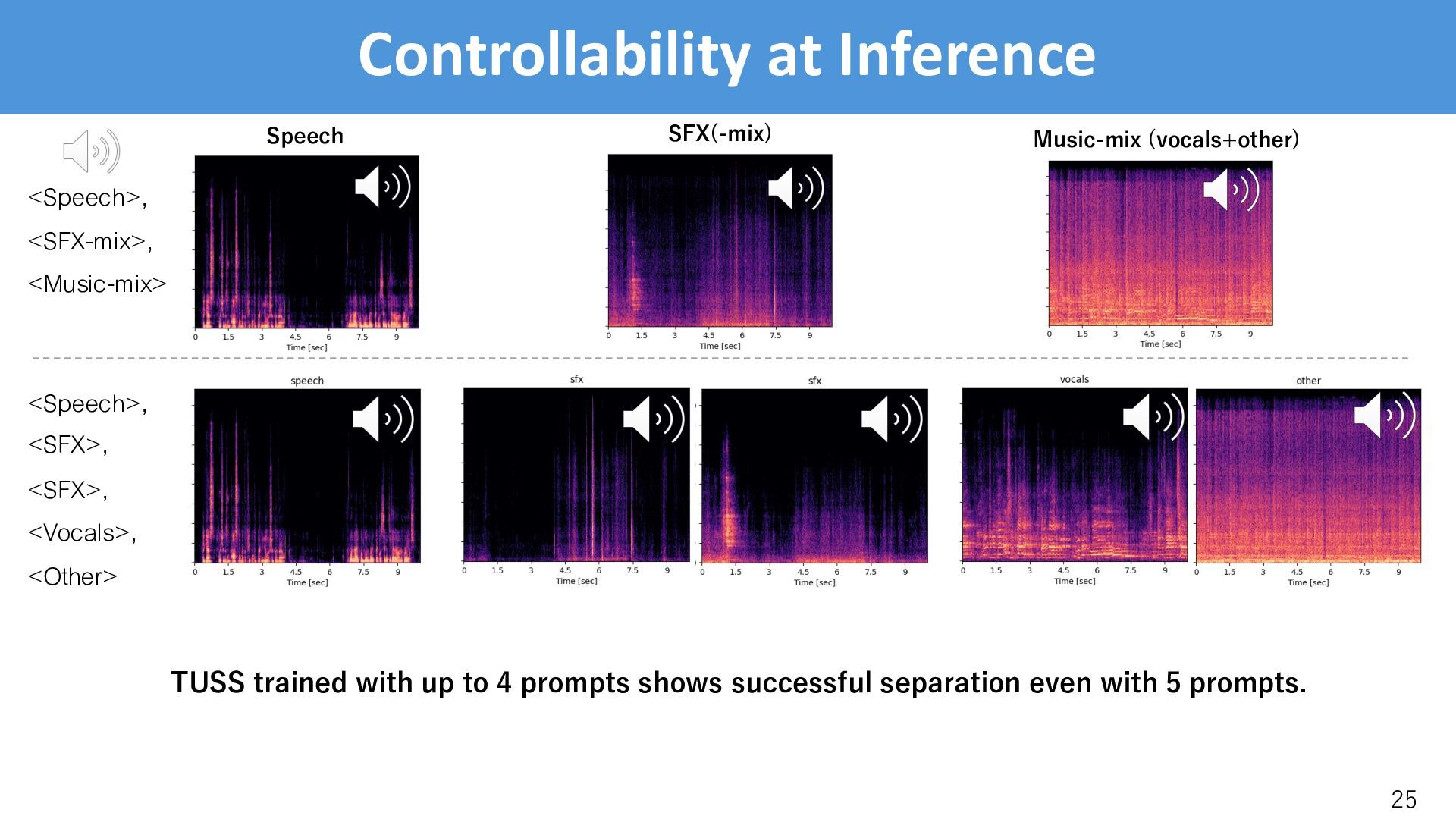 24. Controllability at Inference 25 <Speech>, <SFX>, <SFX>, <Vocals>, <Other> TUSS
