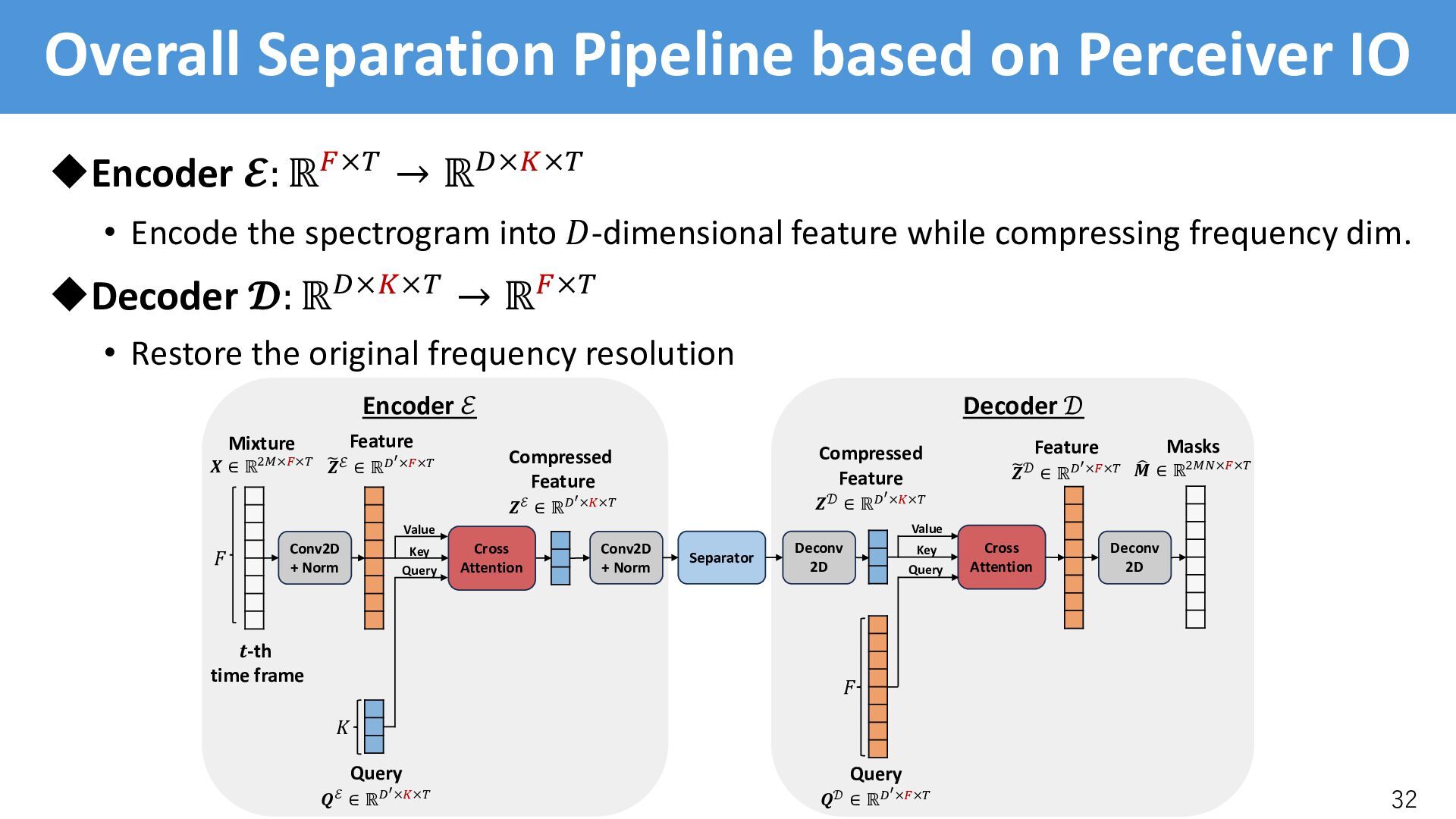 31. Overall Separation Pipeline based on Perceiver IO uEncoder $: ℝ!×#