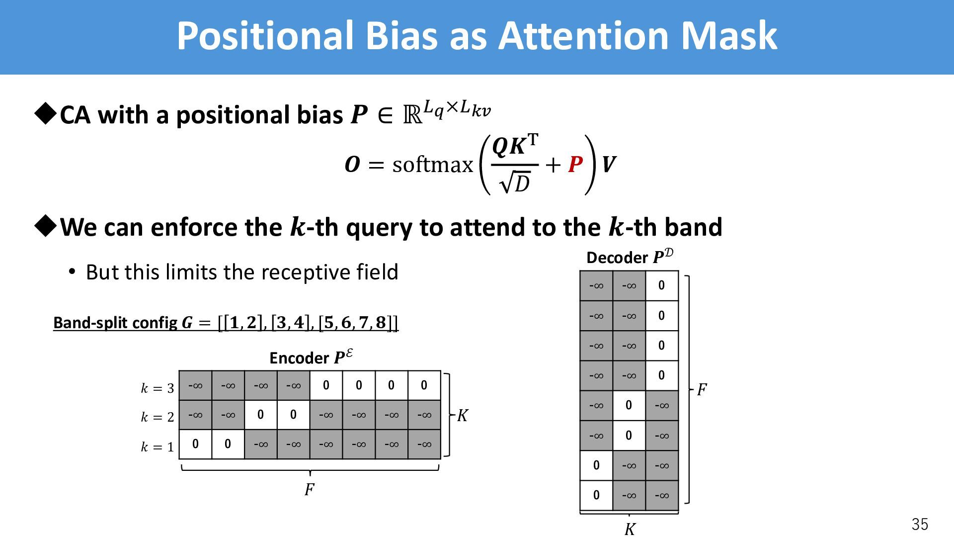 33. Positional Bias to Incorporate Inductive Bias 34 uBand-split • The