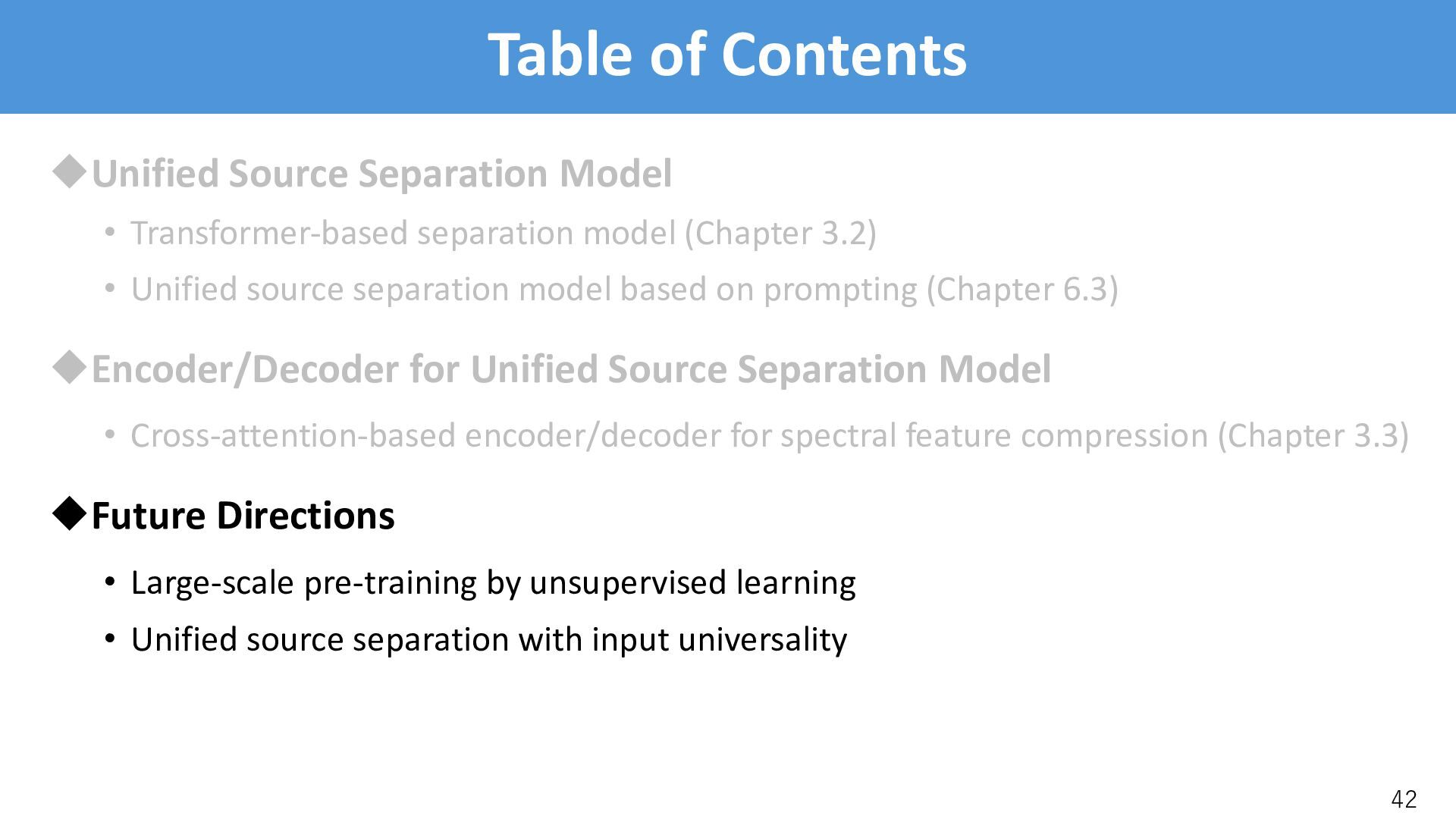 41. Table of Contents uUnified Source Separation Model • Transformer-based separation