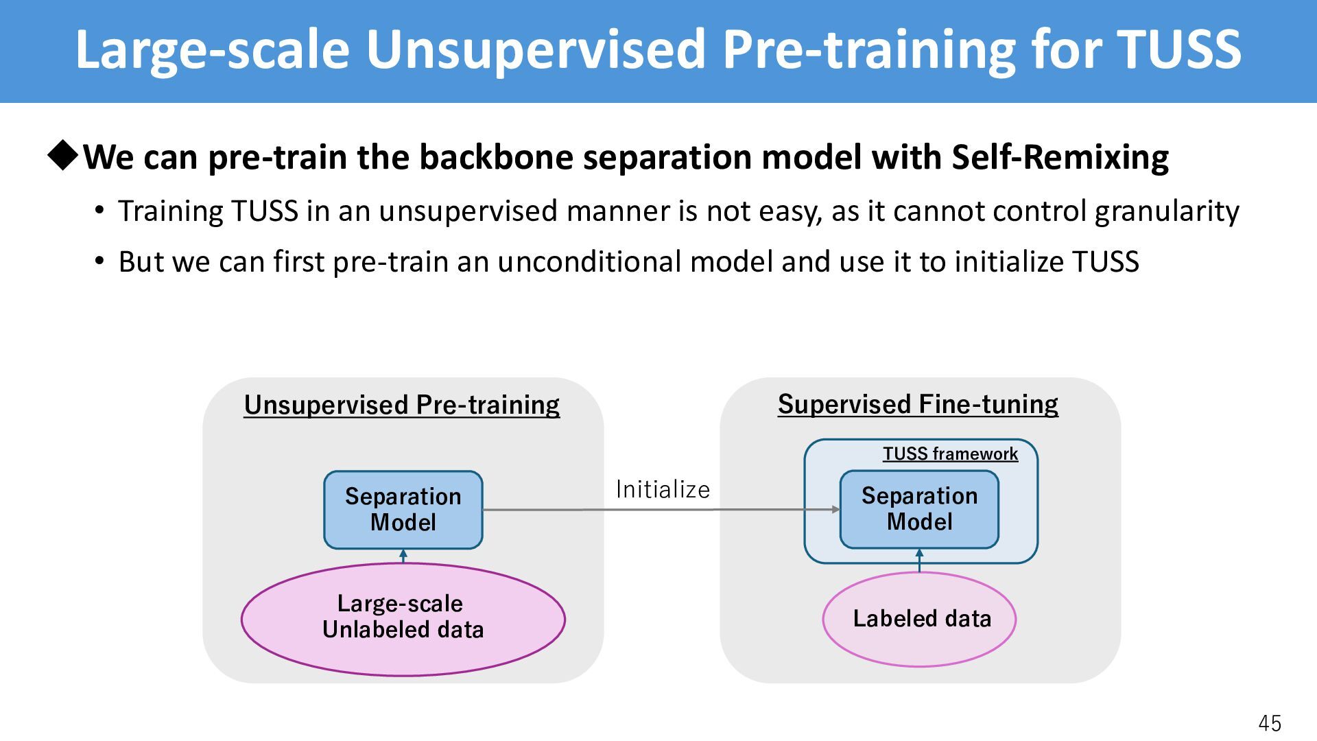 44. Initialize Large-scale Unsupervised Pre-training for TUSS uWe can pre-train the