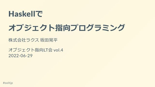 Haskellで オブジェクト指向プログラミング 株式会社ラクス 坂田晃平 オブジェクト指向LT会 vol.4 2022-06-29 #ooltjp