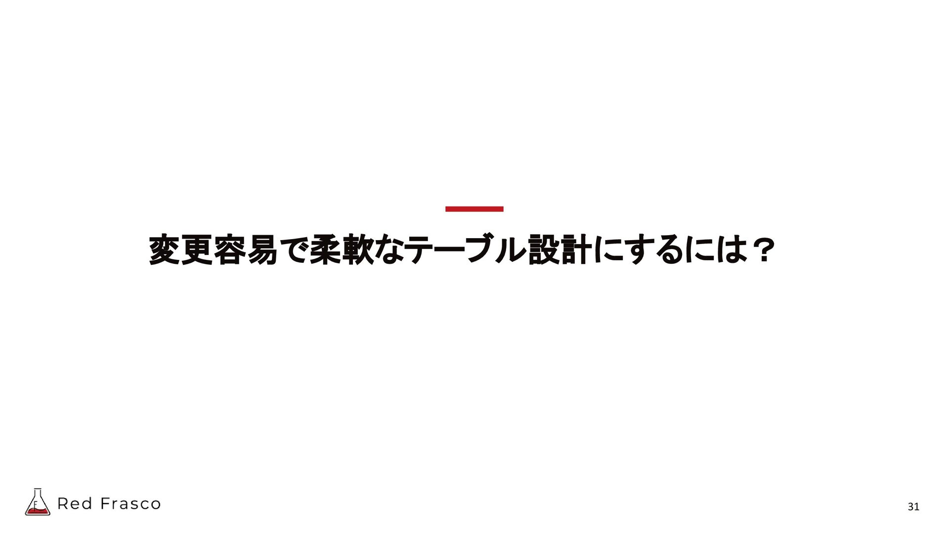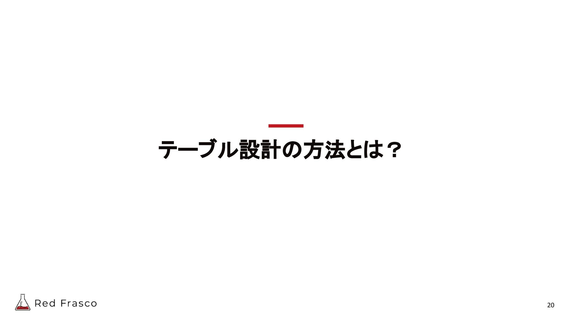 19. 変更容易で柔軟なテーブル設計にするには? 未来に対する変更を折り込む - サービス仕様変更によるデータの扱われ方の変更 - 例) フラグや状態をサービス仕様の都合で変更したい - フラグ専用テーブル(原則1フラグ1テーブル)を用意する -