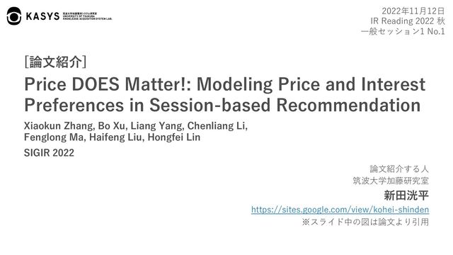 Zhang et al., Price DOES Matter!: Modeling Price and Interest Preferences in Session-based Recommendation, SIGIR 2022, https://dl.acm.org/doi/10.1145/3477495.3532043, (arXiv: https://arxiv.org/abs/2205.04181)