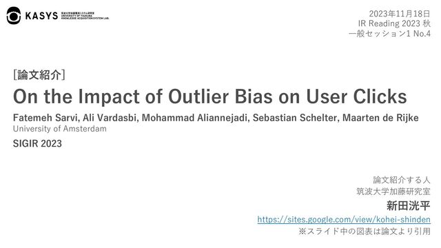 Sarvi et al., On the Impact of Outlier Bias on User Clicks, SIGIR 2023, https://dl.acm.org/doi/abs/10.1145/3539618.3591745, (arXiv: https://arxiv.org/abs/2305.00857)