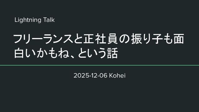 フリーランスと正社員の振り子も面 白いかもね、という話 2025-12-06 Kohei Lightning Talk