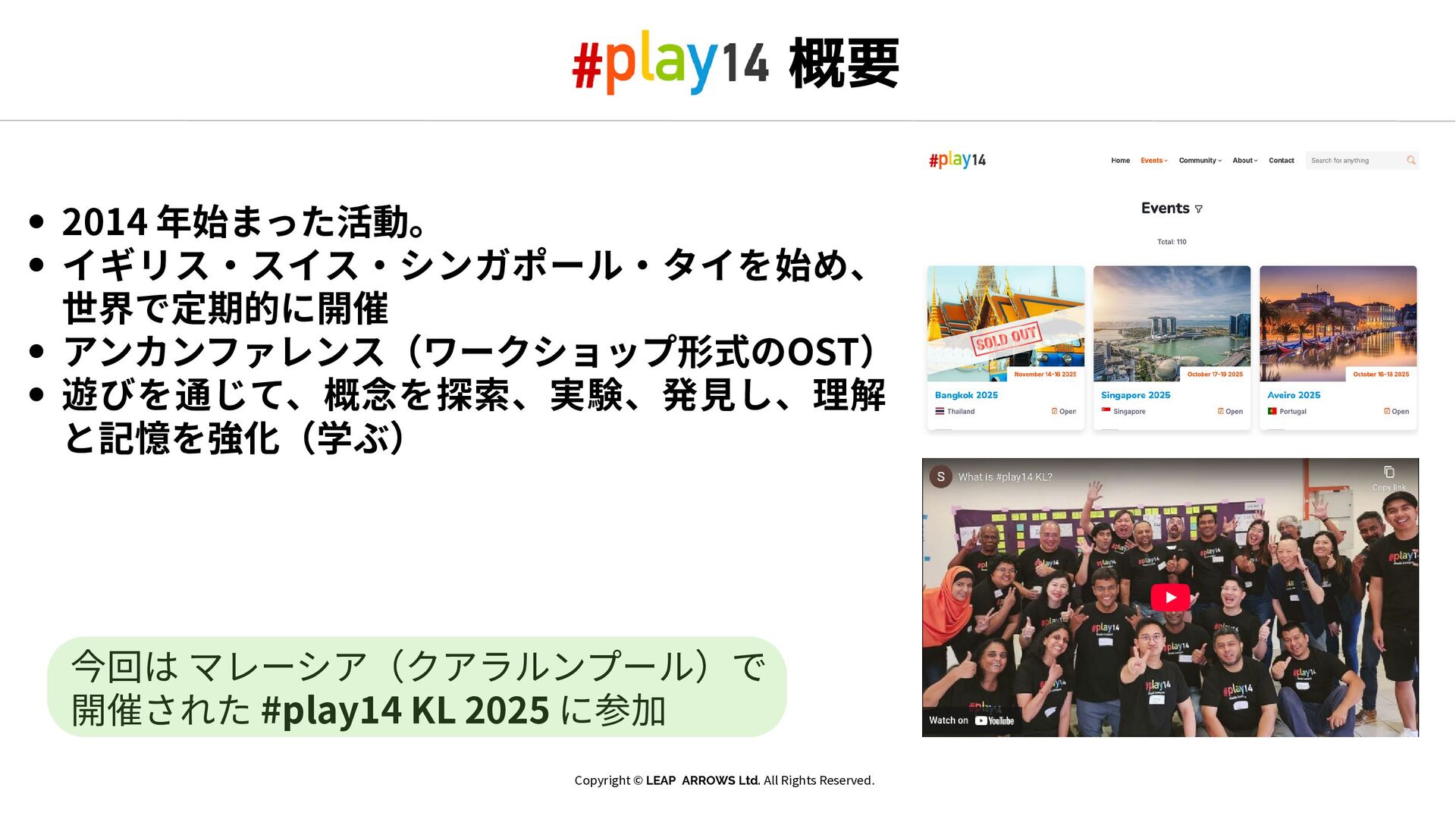 LEAP ARROWS Ltd. All Rights Reserved. Copyright © All Rights Reserved. LEAP ARROWS Ltd. 今回は マレーシア(クアラルンプール)で 開催された #play14 KL 2025 に参加