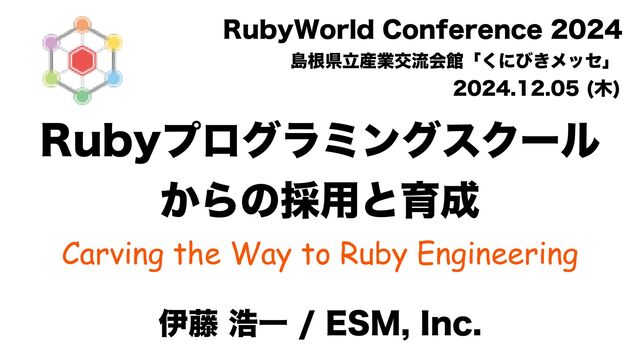 3VCZϓϩάϥϛϯάεΫʔϧ ͔Βͷ࠾༻ͱҭ Carving the Way to Ruby Engineering ҏ౻ߒҰ&4. *OD