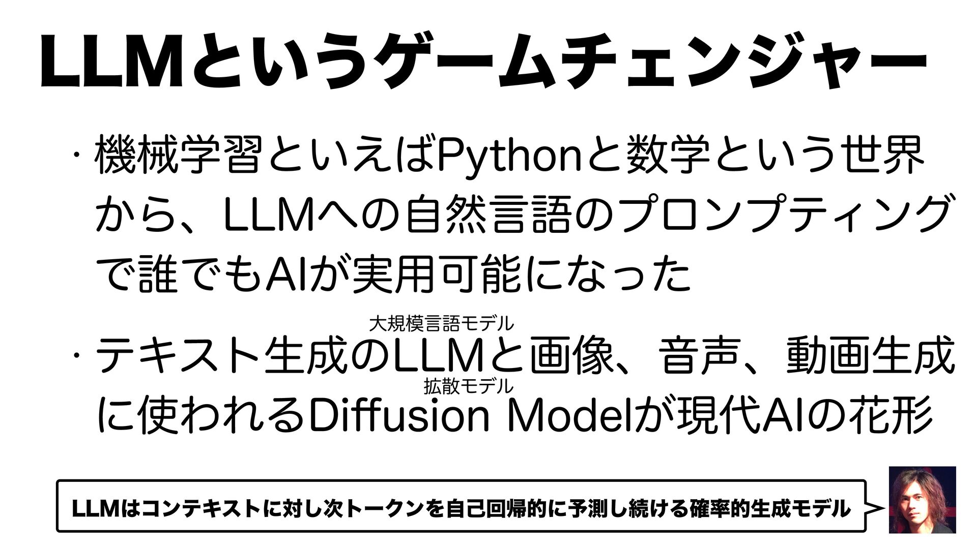 w ػցֶशͱ͍͑1ZUIPOͱֶͱ͍͏ੈք ͔Βɺ--.ͷࣗવݴޠͷϓϩϯϓςΟϯά Ͱ୭Ͱ"*͕࣮༻Մೳʹͳͬͨ w ςΩετੜͷ--.ͱը૾ɺԻɺಈըੜ ʹΘΕΔ%J ff VTJPO.PEFM͕ݱ"*ͷՖܗ --.ͱ͍͏ήʔϜνΣϯδϟʔ