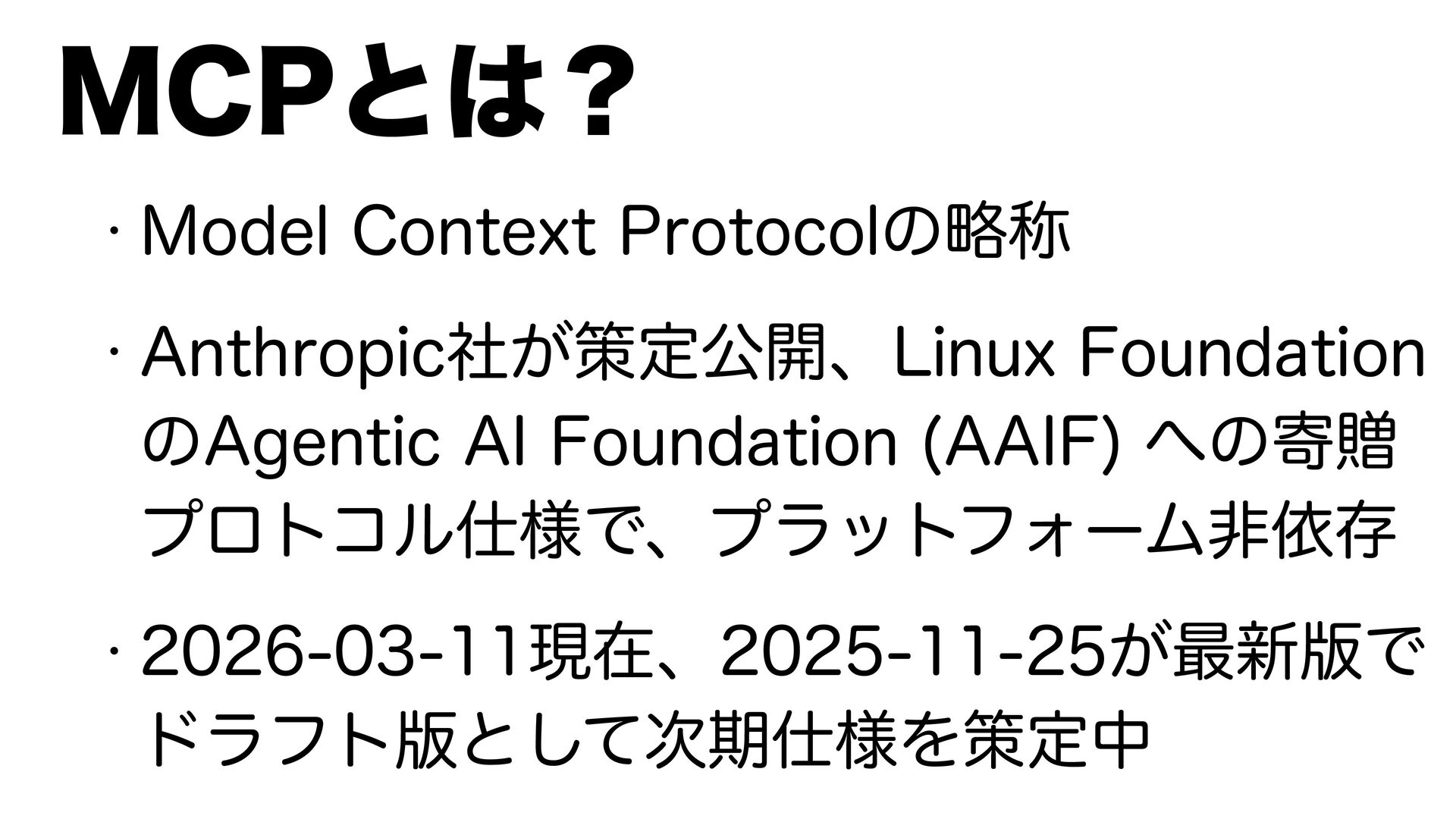 w .PEFM$POUFYU1SPUPDPMͷུশ w "OUISPQJD͕ࣾࡦఆެ։ɺ-JOVY'PVOEBUJPO ͷ"HFOUJD"*'PVOEBUJPO ""*' ͷدଃ ϓϩτίϧ༷ͰɺϓϥοτϑΥʔϜඇґଘ w ݱࡏɺ͕࠷৽൛Ͱ