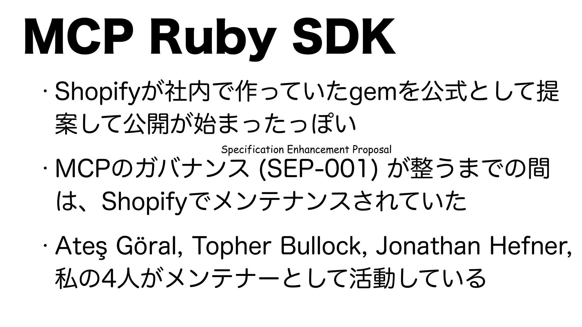 5PQIFS#VMMPDL +POBUIBO)FGOFS ࢲͷਓ͕ϝϯςφʔͱͯ͠׆ಈ͍ͯ͠Δ .$13VCZ4%, Specification Enhancement Proposal