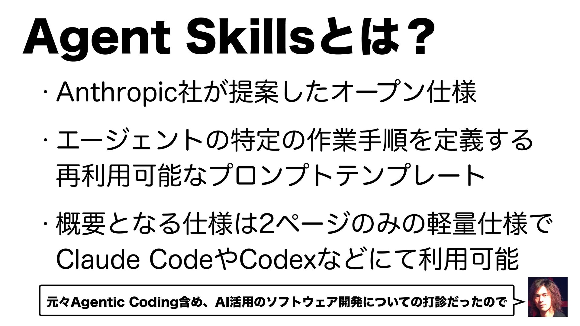 w "OUISPQJD͕ࣾఏҊͨ͠Φʔϓϯ༷ w ΤʔδΣϯτͷಛఆͷ࡞ۀखॱΛఆٛ͢Δ ࠶ར༻ՄೳͳϓϩϯϓτςϯϓϨʔτ w ֓ཁͱͳΔ༷ϖʔδͷΈͷܰྔ༷Ͱ $MBVEF$PEF$PEFYͳͲʹͯར༻Մೳ "HFOU4LJMMTͱʁ ݩʑ"HFOUJD$PEJOHؚΊɺ"*׆༻ͷιϑτΣΞ։ൃʹ͍ͭͯͷଧͩͬͨͷͰ