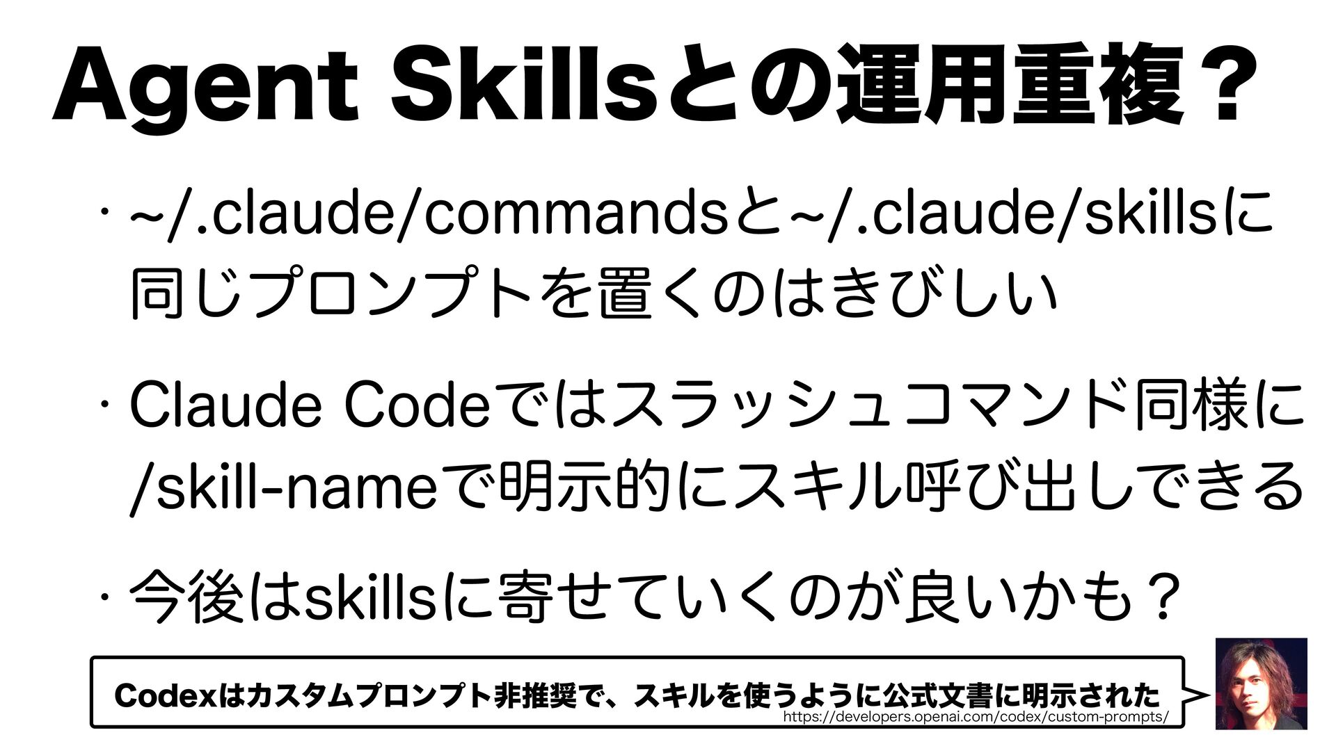 "HFOU4LJMMTͱͷӡ༻ॏෳʁ w dDMBVEFDPNNBOETͱdDMBVEFTLJMMTʹ ಉ͡ϓϩϯϓτΛஔ͘ͷ͖ͼ͍͠ w $MBVEF$PEFͰεϥογϡίϚϯυಉ༷ʹ TLJMMOBNFͰ໌ࣔతʹεΩϧݺͼग़͠Ͱ͖Δ w ࠓޙTLJMMTʹد͍ͤͯ͘ͷ͕ྑ͍͔ʁ $PEFYΧελϜϓϩϯϓτඇਪͰɺεΩϧΛ͏Α͏ʹެࣜจॻʹ໌ࣔ͞Εͨ