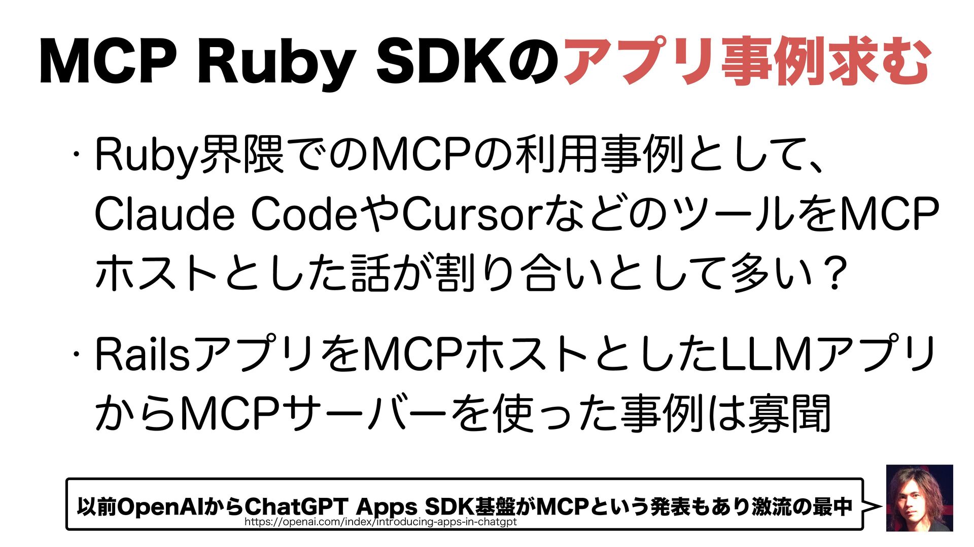 3VCZͰ--.ΞϓϦέʔγϣϯ ։ൃΛࢧ͑Δجૅٕज़ Ruby x LLM Ecosystem ҏ౻ߒҰ&4. *OD 3VCZηϛφʔΦϯϥΠϯ