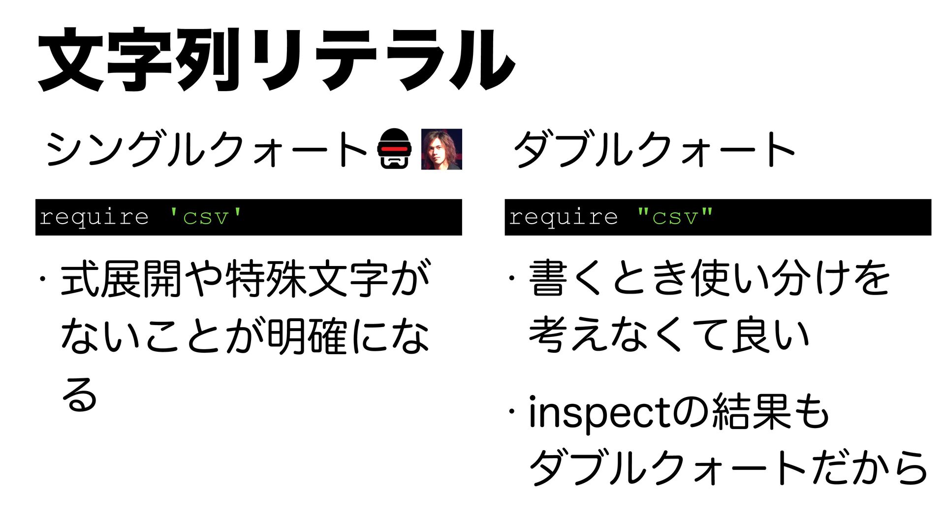จࣈྻϦςϥϧ require 'csv' γϯάϧΫΥʔτ μϒϧΫΥʔτ require "csv" w ॻ͘ͱ͖͍͚Λ ߟ͑ͳͯ͘ྑ͍
