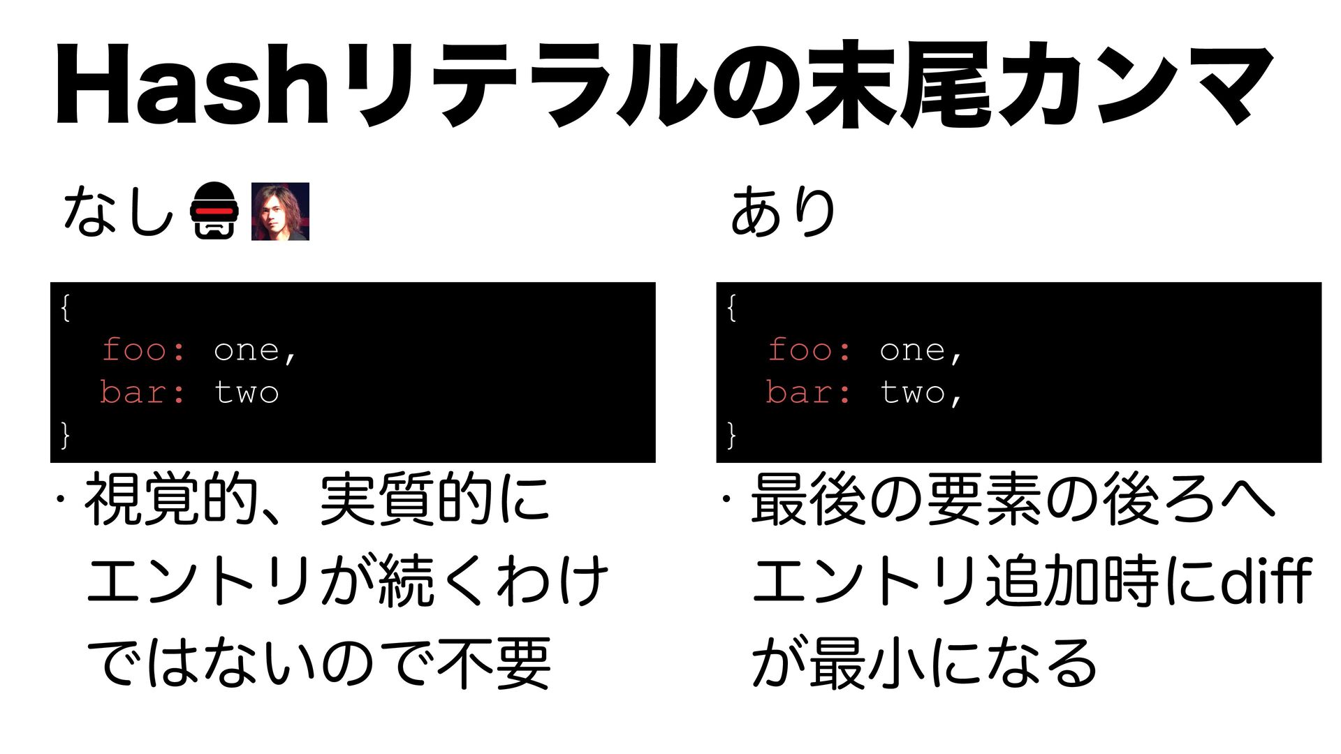 ࢹ֮తɺ࣮࣭తʹ ΤϯτϦ͕ଓ͘Θ͚ Ͱͳ͍ͷͰෆཁ w ࠷ޙͷཁૉͷޙΖ ΤϯτϦՃ࣌ʹEJ f ͕࠷খʹͳΔ { foo: one, bar: two, }