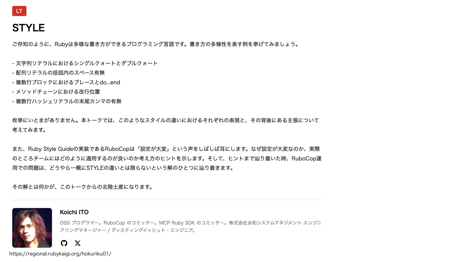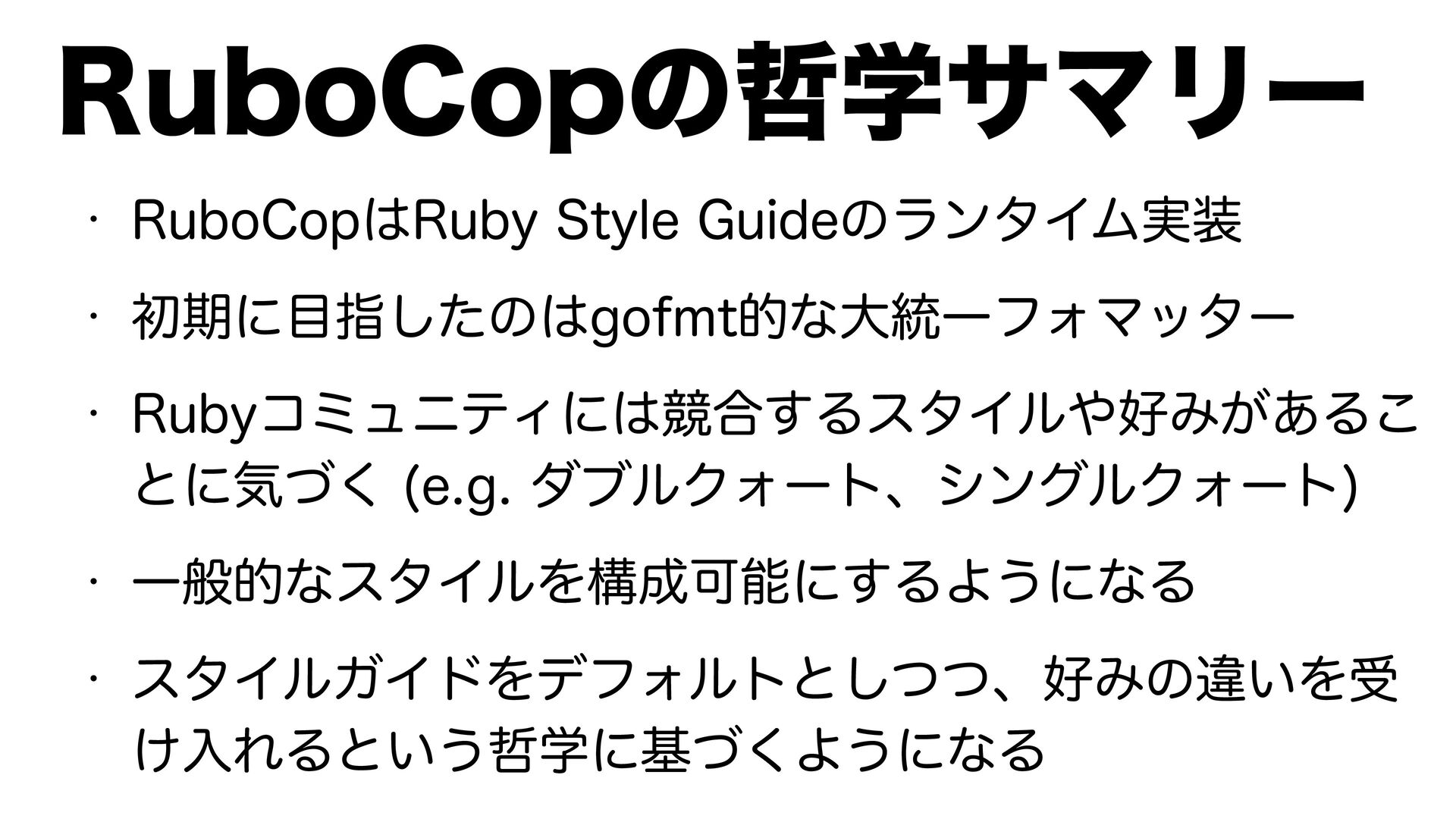 w 3VCP$PQ3VCZ4UZMF(VJEFͷϥϯλΠϜ࣮ w ॳظʹࢦͨ͠ͷHPGNUతͳେ౷ҰϑΥϚολʔ w 3VCZίϛϡχςΟʹڝ߹͢ΔελΠϧΈ͕͋Δ͜ ͱʹؾͮ͘ FHμϒϧΫΥʔτɺγϯάϧΫΥʔτ w