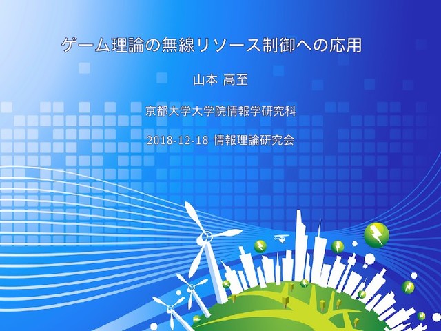 “Optimal transmission scheduling for a hybrid of full- and half-duplex relaying,” IEEE Commun. Lett., vol. 15, no. 3, Mar. 2011. [Yamamoto2015] K. Yamamoto, “A comprehensive survey of potential game approaches to wireless networks,” IEICE Trans. Commun., vol. E98-B, no. 9, Sep. 2015. [ӉҪ 2007] ӉҪ وࢤ, “れふアてを゚だがわ〣جຊతੑ࣭,” Japanese, Ұ ڮだがわཧゞがぜてゖひゆ 2007, Mar. 2007. [ࢁຊ 2012] ࢁຊ ߴࢸ, “だがわཧ〣ແઢ௨৴〭〣Ԡ༻,” Japanese, ৴ֶ ࢽ, vol. 95, no. 12, Dec. 2012. [ࢁຊ 2016] ——,“ແઢ௨৴〝れふアてを゚だがわ,” Japanese, ܭଌ〝੍ ޚ, vol. 55, no. 11, Nov. 2016. [ࢁຊ 2017] ——,“な゚ぼひぷゞがぜ〣֬زԿղੳ〣جૅ,” Japanese, in ৴ֶٕใ, CQ2017-57, Aug. 2017. [Ԭా 2011] Ԭా ষ, だがわཧ৽൛, Japanese. ༗൹ֳ, 2011. 50 / 47