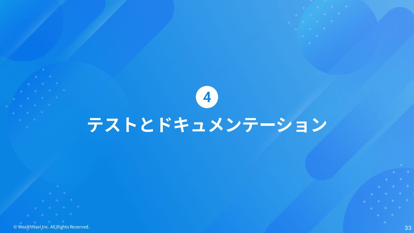 28. © WealthNavi Inc. All Rights Reserved. 34 共通ライブラリのテスト⽅針 • ユニットテスト