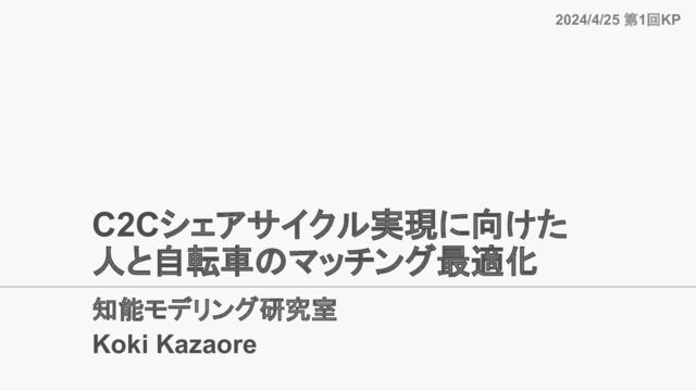 C2Cシェアサイクル実現に向けた人と自転車のマッチング最適化