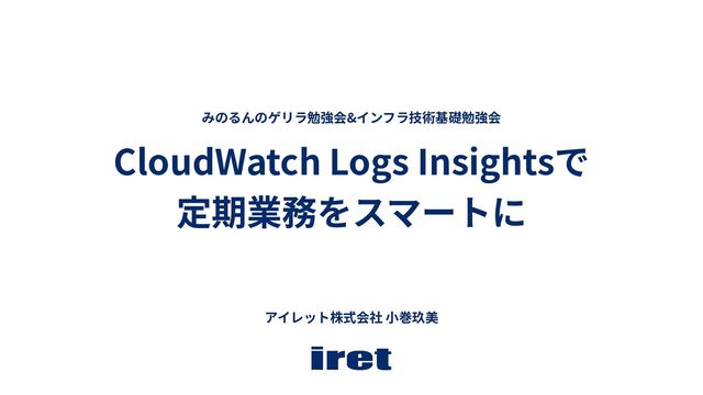 CloudWatch Logs Insightsで 定期業務をスマートに みのるんのゲリラ勉強会&インフラ技術基礎勉強会 アイレット株式会社 ⼩巻玖美