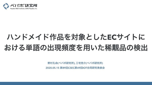 ଜ໋(ϖύϘݚڀॴ), ࡾ༔հ(ϖύϘݚڀॴ) 2020.05.15 ୈ89ճCSECୈ49ճIOT߹ಉݚڀൃදձ ϋϯυϝΠυ࡞Λରͱͨ͠ECαΠτʹ ͓͚Δ୯ޠͷग़ݱසΛ༻͍ͨك᧵ͷݕग़