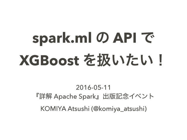 spark.ml ͷ API Ͱ XGBoost Λѻ͍͍ͨʂ 2016-05-11 ʰৄղ Apache Sparkʱग़൛ه೦Πϕϯτ