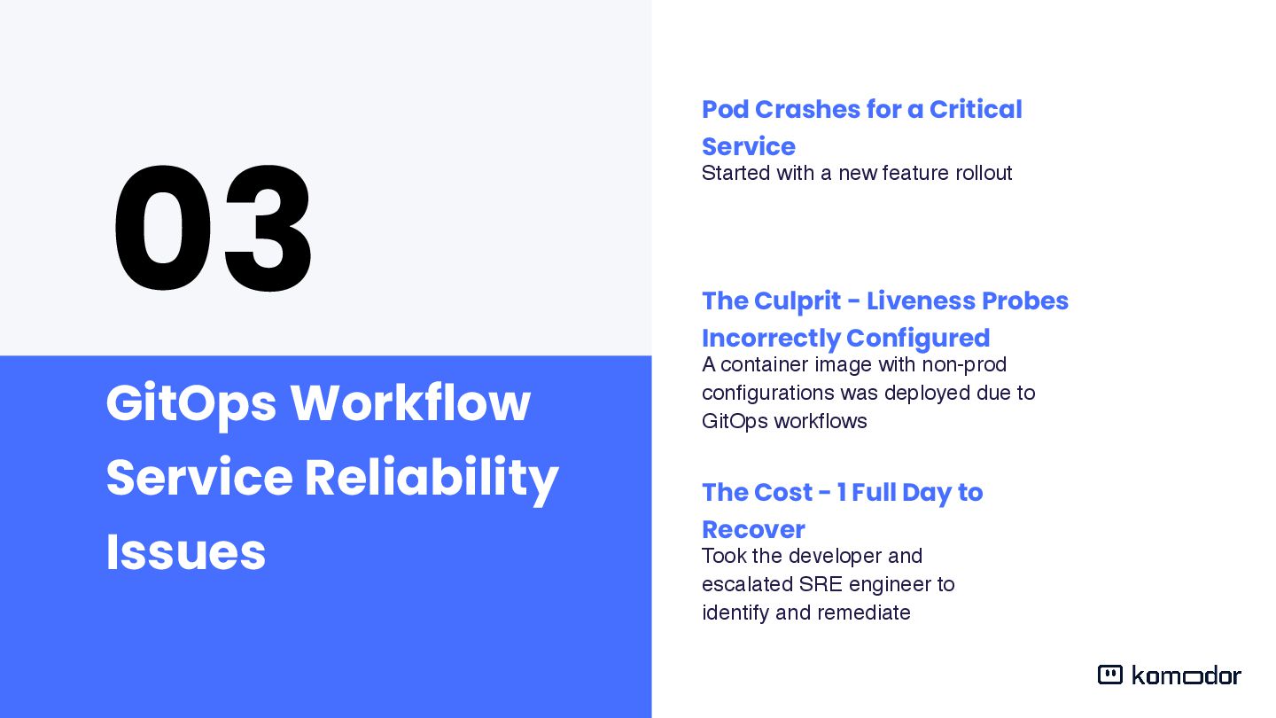 Move towards GitOps Proactively catch misconfigurations with automated alerts and self-healing mechanisms to reduce MTTR.