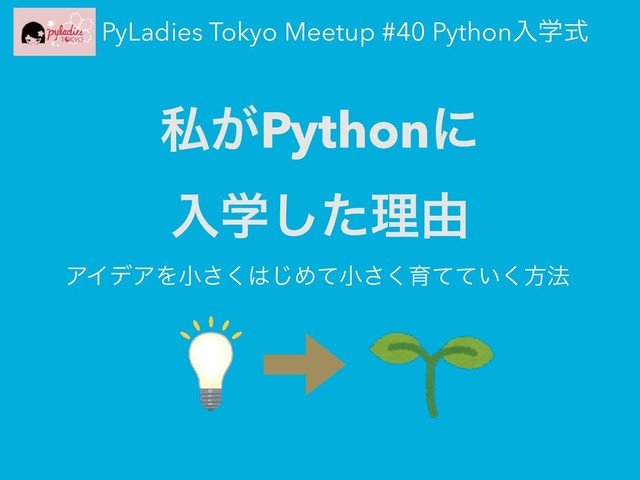ࢲ͕Pythonʹ ೖֶͨ͠ཧ༝ ΞΠσΞΛখ͘͞͡Ίͯখ͘͞ҭ͍ͯͯ͘ํ๏ PyLadies Tokyo Meetup #40 Pythonೖֶࣜ