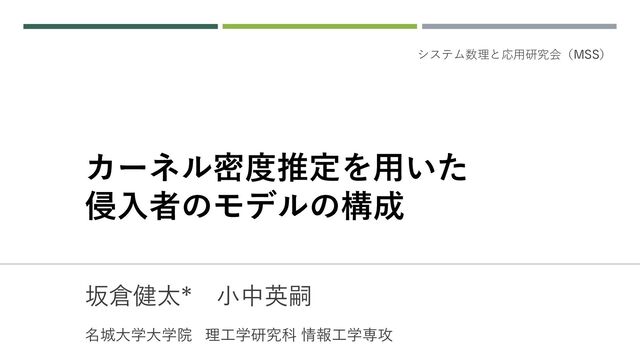 カーネル密度推定を用いた 侵入者のモデルの構成 坂倉健太* 小中英嗣 名城大学大学院 理工学研究科 情報工学専攻 システム数理と応用研究会(MSS)