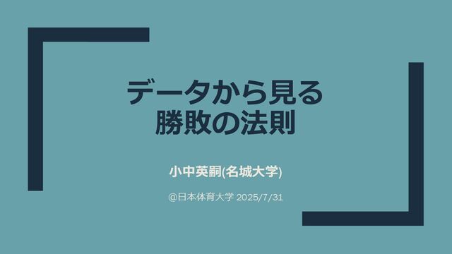 度)の計測 ▪ 情報の粒度:スコアブックから格 段に細かく ▪ 「状態」を詳細に記録可能 @日本体育大学 2025/7/31 2010~ Introducing Statcast 2020: Hawk-Eye and Google Cloud | by Ben Jedlovec | MLB Technology Blog (mlblogs.com)
