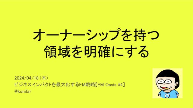 オーナーシップを持つ 領域を明確にする 2024/04/18 (木) ビジネスインパクトを最大化するEM戦略【EM Oasis #4】 @konifar
