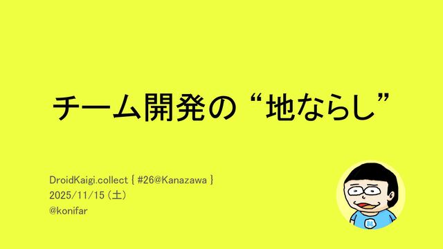 チーム開発の “地ならし” DroidKaigi.collect { #26@Kanazawa } 2025/11/15 (土) @konifar