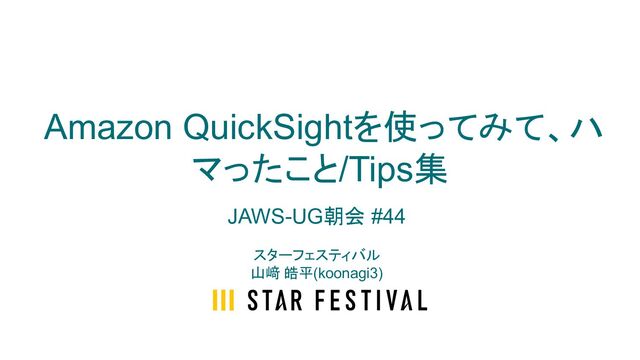 Amazon QuickSightを使ってみて、ハ マったこと/Tips集 JAWS-UG朝会 #44 スターフェスティバル 山﨑 皓平(koonagi3)