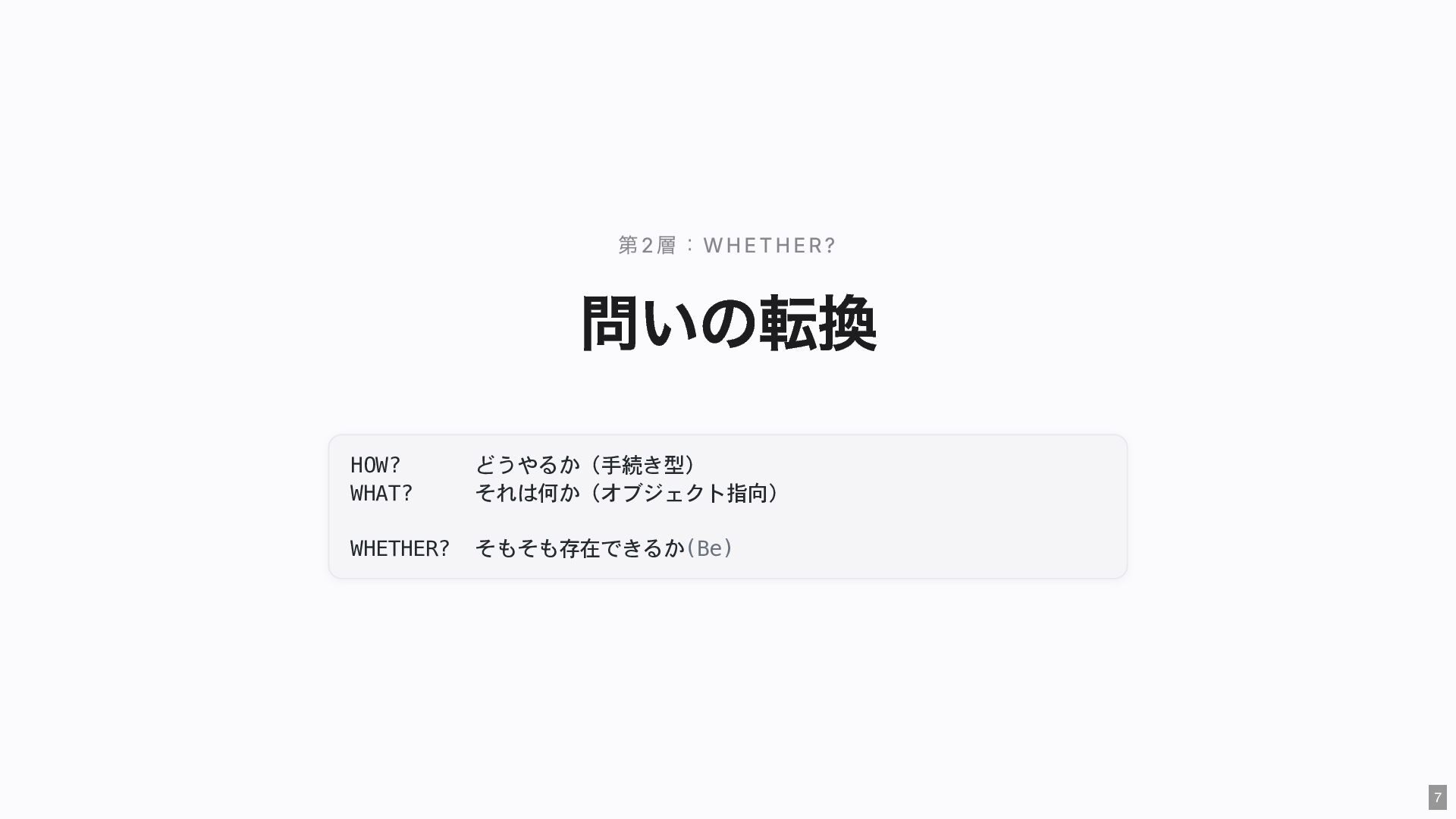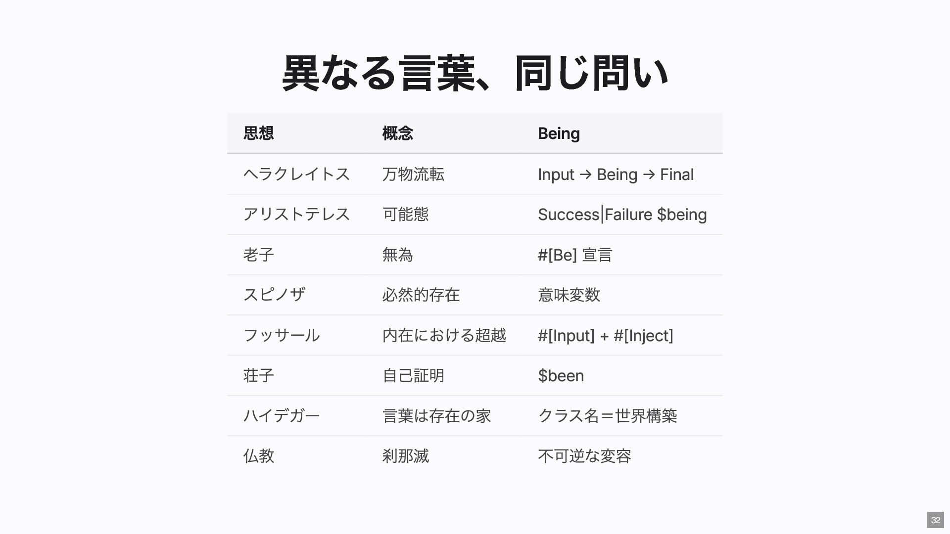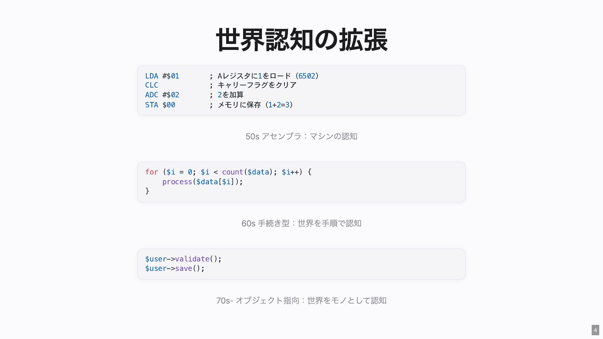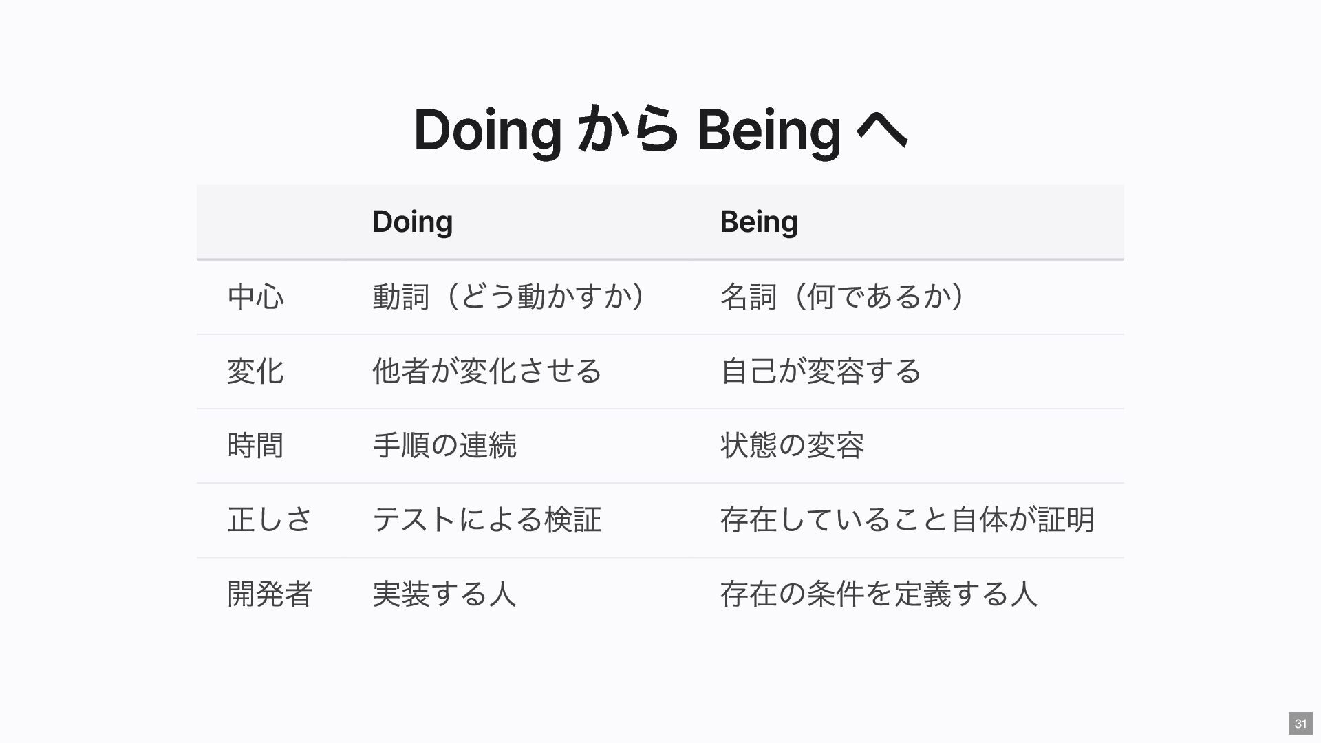 "IMMEDIATE" public string $color; // "RED" public function __construct( #[Input] float $bodyTemperature, #[Input] int $heartRate, #[Input] Emergency $being ) { $this->priority = 'IMMEDIATE'; $this->color = 'RED'; } public function assignER(): string { ... } // この能力はここだけ } final readonly class ObservationCase { public function __construct( #[Input] float $bodyTemperature, #[Input] int $heartRate, #[Input] Observation $being ) {} public function assignWaitingArea(): string { ... } // この能力はここだけ } 23