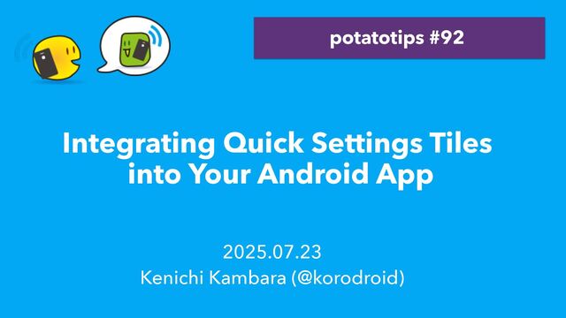 as technical speeches, technical writings and so on. Facebook:http://fb.com/kanbara.kenichi X:@korodroid LinkedIn:http://www.linkedin.com/in/korodroid Thank you so much