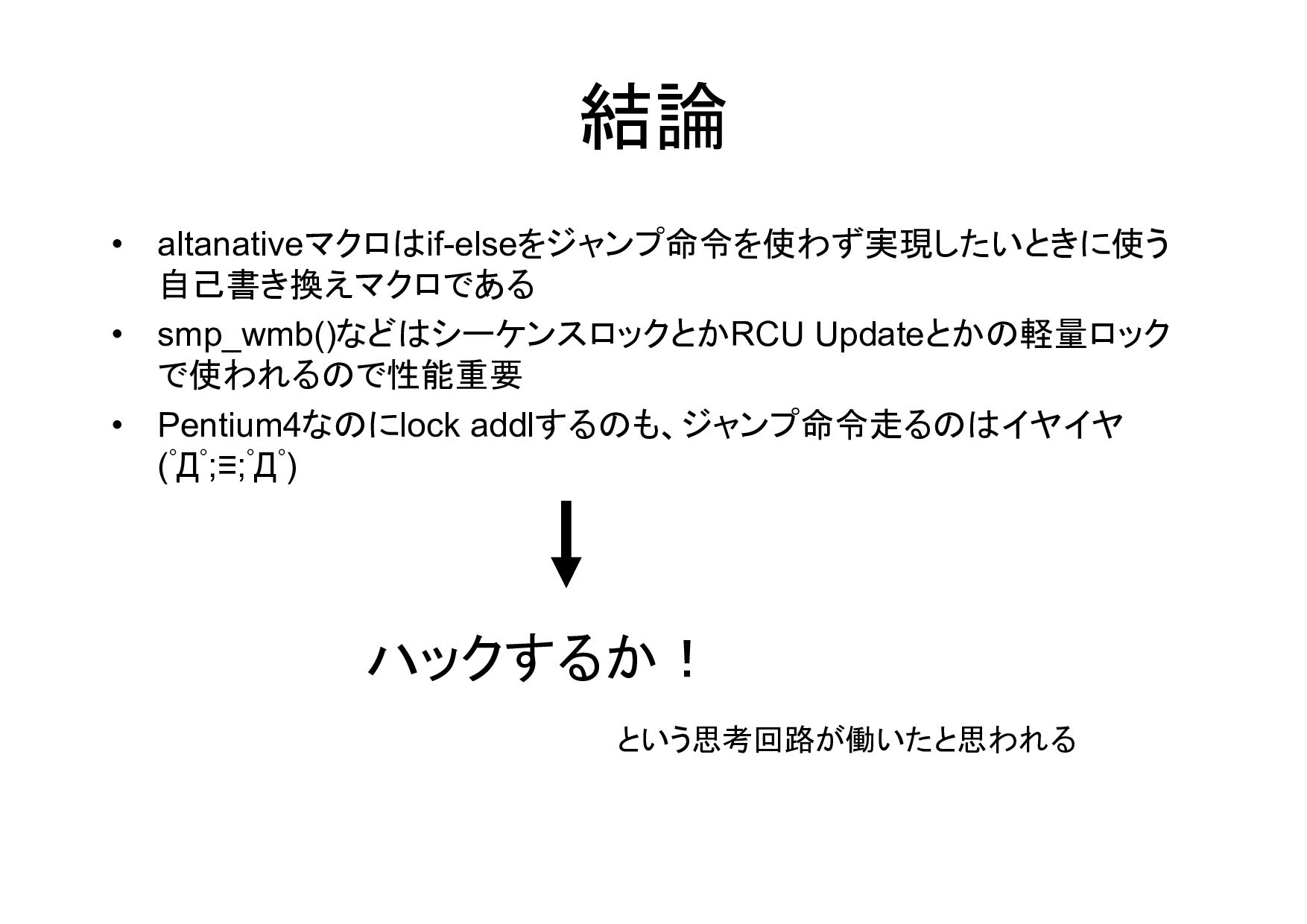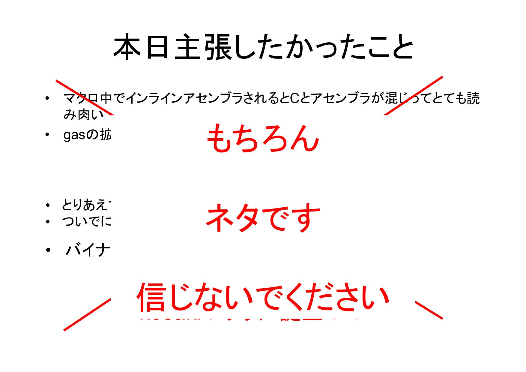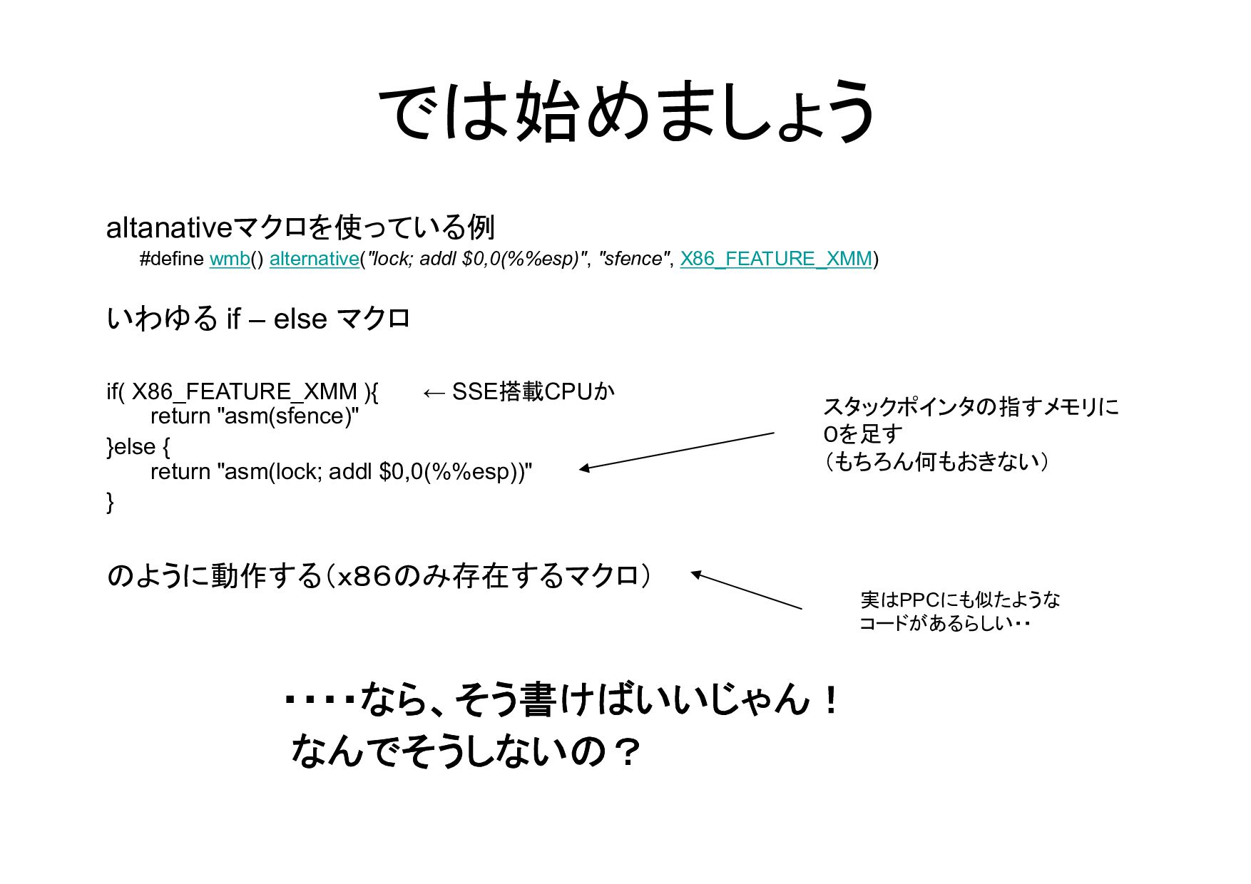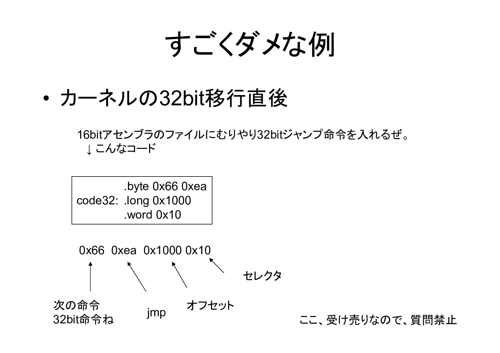 12 .altinstr_replacement 00000006 0804841c 0804841c 0000041c 2**0 CONTENTS, ALLOC, LOAD, READONLY, CODE 13 .fini 0000001a 08048424 08048424 00000424 2**2 CONTENTS, ALLOC, LOAD, READONLY, CODE 14 .rodata 00000008 08048440 08048440 00000440 2**2 CONTENTS, ALLOC, LOAD, READONLY, DATA 15 .altinstructions 00000017 08048448 08048448 00000448 2**2 CONTENTS, ALLOC, LOAD, READONLY, DATA さっきの、なんちゃって main.c をコンパイルして objdump a.out 中でのセクションのファイルオフセットとサイズが分かるので・・・
